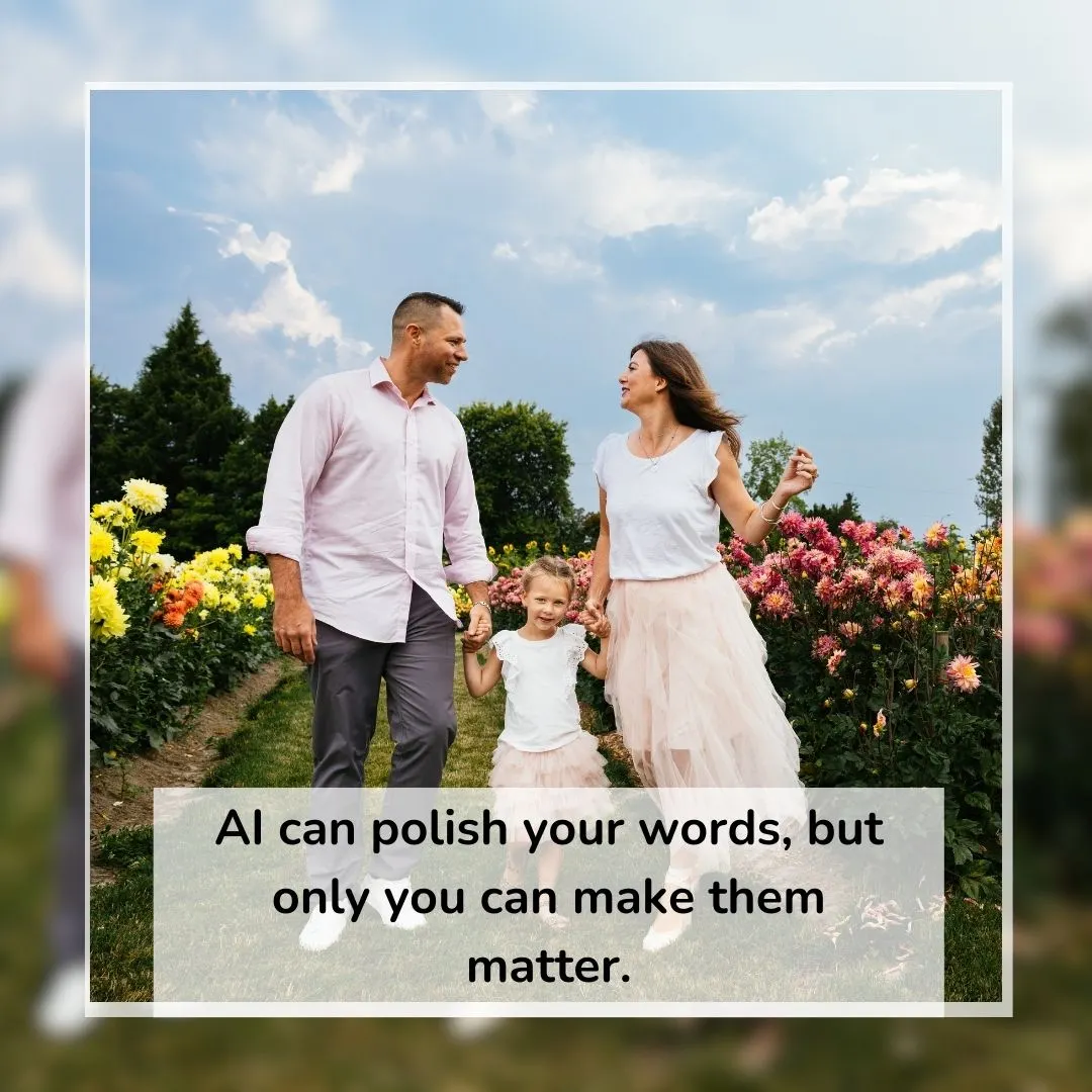 But it will never carry the electricity of your lived story, your trembling voice, your unscripted laugh.